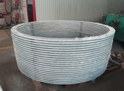 天盟公司采用熱噴塗技術,在法蘭表麵噴鋅或者噴鋁,用以提高其使用性能,法蘭表麵噴塗鋅鋁這類的金屬塗層,其優點是熱效率高,熱能利用率高;基體與塗層結合輕度高;塗層孔隙率低,致密性強,能有效提高耐磨耐蝕性能。