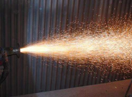 燃煤爐受熱麵容易受飛灰磨損,在這種磨損下,受熱麵需要頻繁更換,這不但會增加發電的成本,而且還有可能造成受熱麵的泄露或者是爆管事故,危害非常大。此次噴塗修複,濟南天盟公司采用熱噴塗技術在鍋爐受熱麵表麵噴塗SAM防磨絲材,這種絲材材料硬度>HRC57,以Fe基含Cr、Ni、B等合金或陶瓷成分的電弧噴塗粉芯絲材噴塗而成,噴塗層中含有非晶相,其耐磨、耐蝕性能優於國內外常用電弧噴塗材料,所形成的塗層結合強度>55Mpa,塗層孔隙率<1%,具有良好的耐磨、耐腐蝕、耐高溫性能。